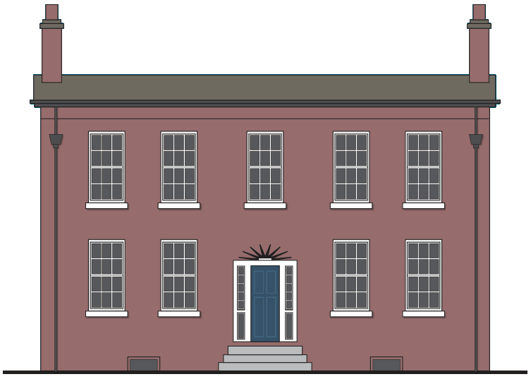 From the mid-late 19th century a change in design doors took place from having four panels instead of six. The reason is not entirely clear but it is possible that a slight reduction in the width of doorways, possibly associated with fashion allowed four panels to be more proportionally more acceptable than six. Also during this period the mouldings also became more robust and heavy and were required the semi-circular fanlight was replaced by a plain horizontal rectangular fanlight.